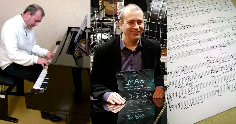 La formule du concours m’a immédiatement interpellé : ensemble de musique actuelle avec orchestre d’harmonie. C’est rare, quasiment inexistant. Je me suis dit qu’avec mon expérience, il y avait sans doute quelque chose pour moi. En effet d’une part j’ai été pianiste dans un big band pendant une vingtaine d’années, d’autre part en 25 ans d’enseignement j’ai beaucoup travaillé sur le jazz et les musiques actuelles, notamment avec l’écriture d’arrangements. Avec mes deux casquettes donc, écriture jazz et pour orchestre d’harmonie, je pouvais envisager de participer à ce concours.