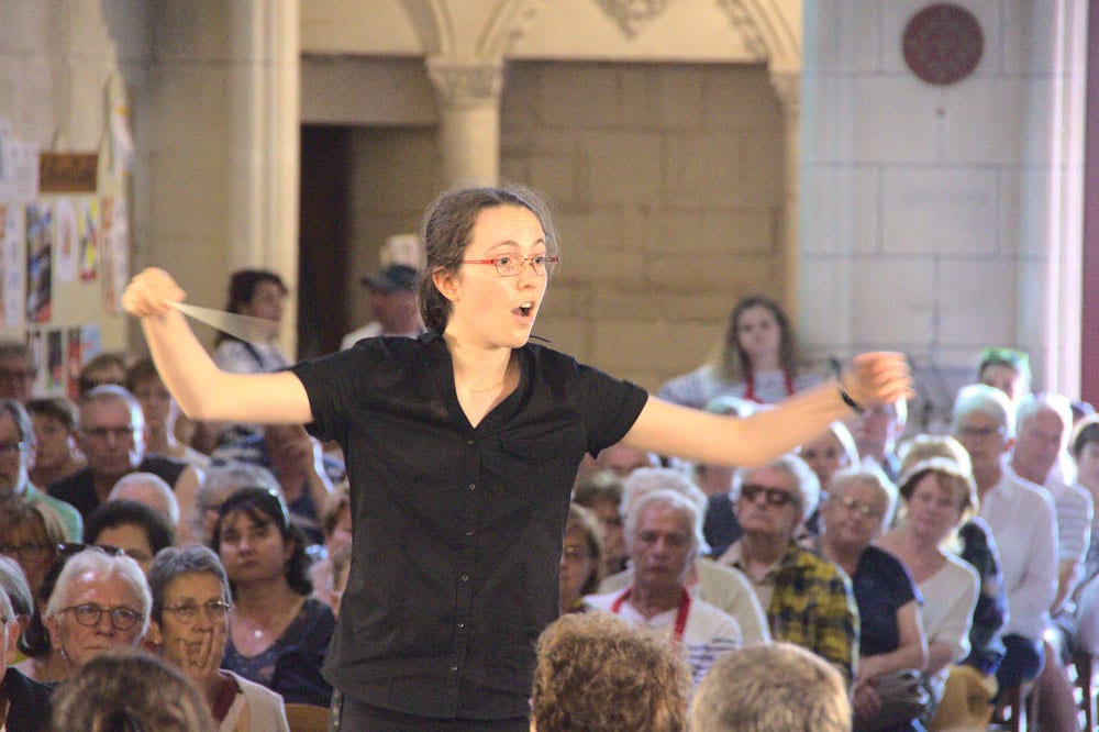 J’étais encore au lycée, très timide, cela me semblait impossible. Je me suis laissée un peu de temps, et j’y suis seulement allée à la deuxième session, encadrée par Didier Descamps, chef de musique dans les armées. Cela m’a tellement plu que je me suis inscrite une deuxième fois, et il se trouve que l’orchestre support était celui de Saint Savinien. J’ai donc dirigé des gens que je connaissais bien. À l’issue du stage, André Telman m’a proposé de diriger entièrement une pièce, de la première répétition jusqu’au concert. L’orchestre a approuvé, les musiciens étaient d’accord pour participer à ma formation en direction.