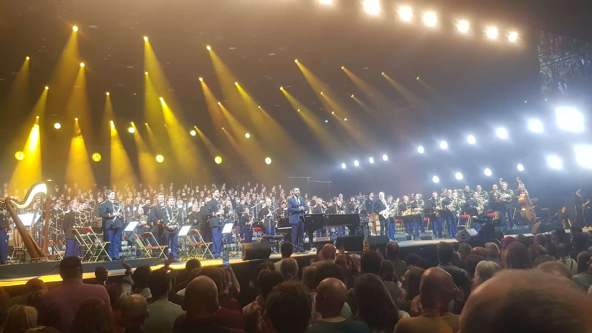 Puis vint l’heure ! Les 100 musiciens – 50 à chaque balcon de l’Accor Aréna – au milieu du public, sortent leurs instruments et se mettent à jouer, pour le plus grand plaisir des spectateurs médusés !