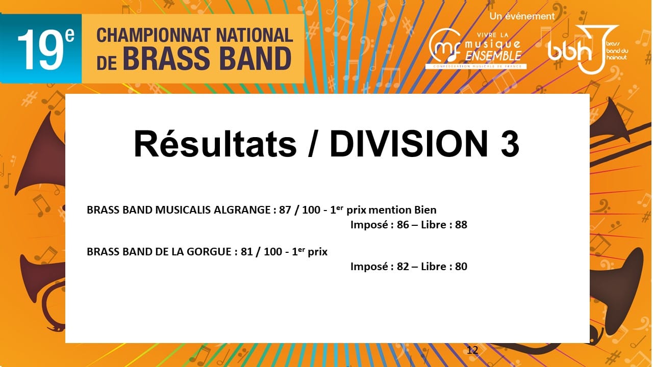 - Brass Band Musicalis Algrange : 87/100 – 1er prix mention Bien.