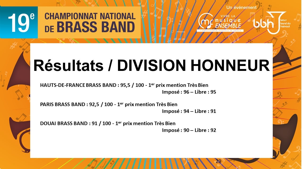 - Douai Brass Band : 91/100 – 1er prix mention Très bien.