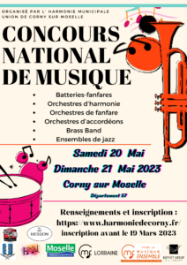 - Le concours organisé par la CMF Moselle et l’Harmonie de Montigny-lès-Metz : Montigny-lès-Metz (57) les samedi 30 & dimanche 31 mai 2026