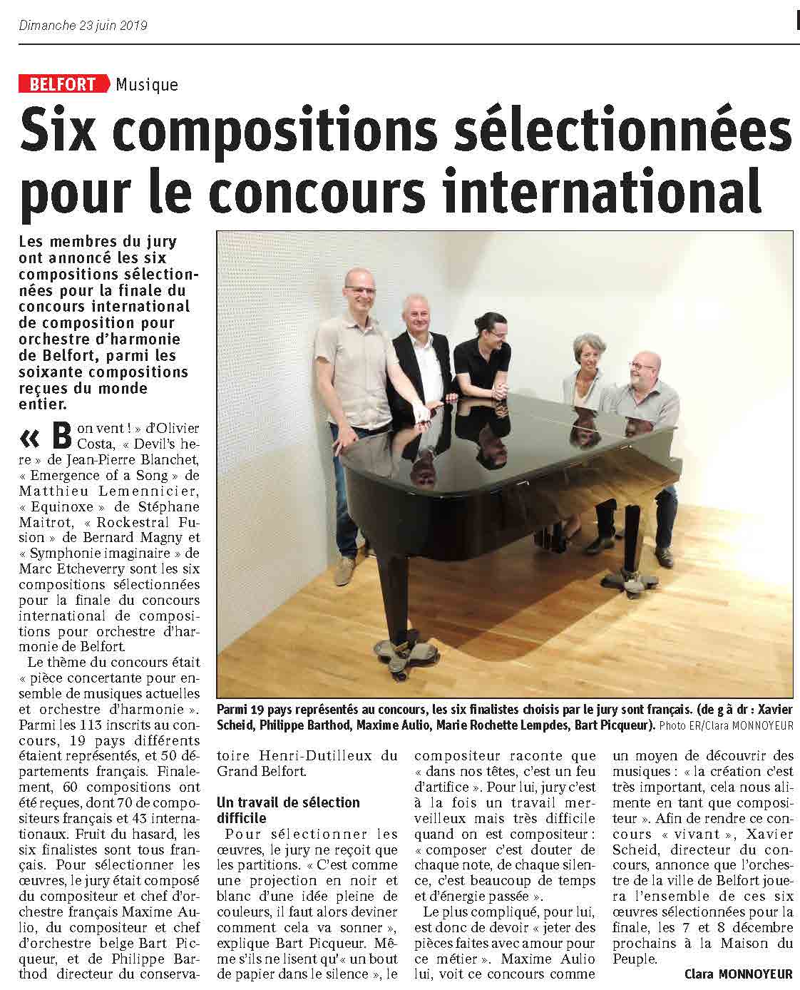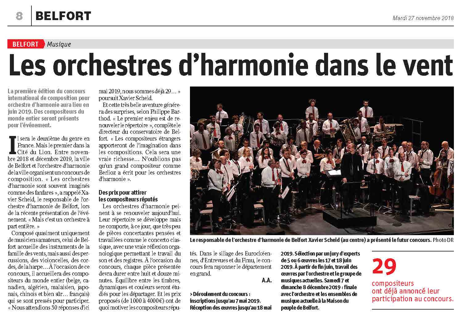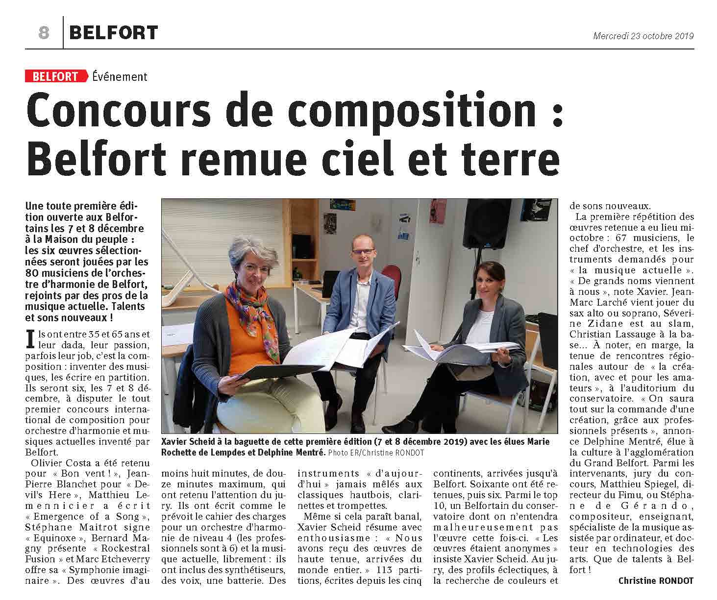 Ainsi naquit l’idée de l’organisation de la 1ère édition du concours international de composition pour orchestre d’harmonie de Belfort ayant pour thème : « Pièce concertante pour orchestre d’harmonie et ensemble de musiques actuelles ».