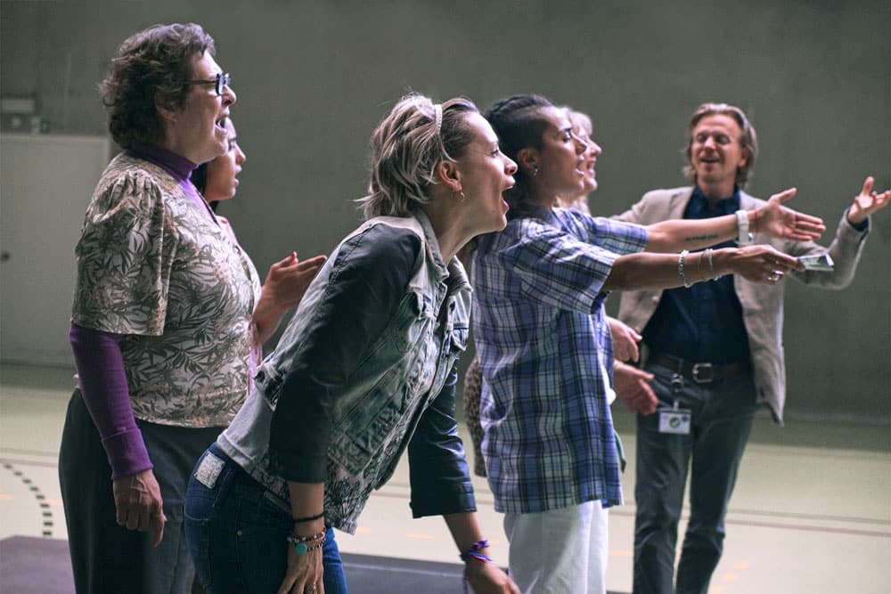 Je voulais aussi dans ce film un décalage vocal, entre le personnage principal qui arrive avec une idée précise – apprendre à des femmes incarcérées la grande musique – et la réalité, ce qui va opérer ou non, les désillusions. Le choix du répertoire est donc éminemment important, surtout en prison où chacun à sa propre idée. Dehors, les gens se réunissent dans une chorale autour d’un type de musique : chant lyrique, gospel, blues… La voix a ses territoires. Or, en prison, les personnes incarcérées ont chacune des territoires différents, que le personnage principal va devoir essayer de réunir. Il va donc devoir composer avec toutes ces femmes, se remettre en question, aller vers des styles musicaux éloignés de lui, pour réussir à unifier dans un chœur ces femmes différentes, pour créer quelque chose d’un peu nouveau, avec des voix.