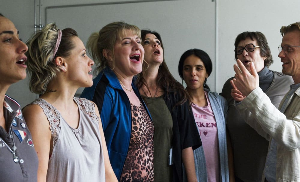 Je suis allé plusieurs fois en prison pour écrire le film, notamment au centre pénitentiaire de Bapaume où j’ai pu suivre une chorale mixte pendant plusieurs semaines. J’ai également rencontré le musicologue Michaël Andrieu, qui a beaucoup travaillé sur la musique en milieu carcéral et qui m’a conseillé et suivi pendant la phase d’écriture. Une fois celle-ci terminée, nous avons « testé » l’atelier chant du scénario, avec une bonne partie des chansons du film, dans le quartier des femmes de la prison de Fleury-Mérogis. Ainsi, pendant une semaine, nous avons travaillé avec neuf femmes, d’ailleurs assez semblables aux typologies des personnages du scénario. Michaël Andrieu animait l’atelier, et je chantais avec elles. J’ai pu observer comment il procédait, les exercices de respiration, les exercices de mise en voix, le rapport qu’il entretenait avec les élèves, c’était passionnant. Le film s’est ainsi nourri de différentes expériences que j’ai pu avoir, et des conseils de Michaël Andrieu.