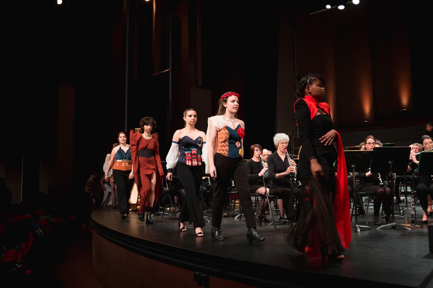 Fin des années 90-début 2000, la CMF Pays de la Loire a largement été soutenue financièrement et encouragée par le conseil régional, et a pu se lancer dans la commande de nouvelles œuvres à des compositeurs des Pays de la Loire. Des années plus tard, revenant dans la région, j’ai vu que de belles pièces avaient été commandées, qu’un riche patrimoine s’était constitué au fil du temps, avec des compositions modernes, des pièces de genre, des musiques de tradition populaire ou folkloriques. J’ai voulu en faire l’inventaire, j’ai réussi à en retrouver un certain nombre, difficilement, et j’ai alors imaginé ce projet des Rencontres ligériennes, d’abord joué à Nantes il y quelques semaines, en associant à nouveau la section mode du lycée, avec huit pièces aux univers complètement différents de compositeurs des Pays de la Loire. Pour le congrès à Saumur, nous allons reprendre quatre pièces :