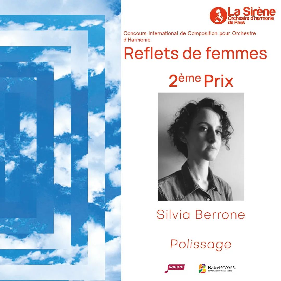 Silvia Berrone a commencé très jeune ses études de piano, avant de se consacrer au monde de la composition. Elle a étudié à Pavie et à Turin avant d’intégrer le CNSMD de Lyon. Avec sa pièce Polissage, elle a obtenu le 2eme prix du concours ” Reflets de femmes” organisé par La Sirène de Paris.