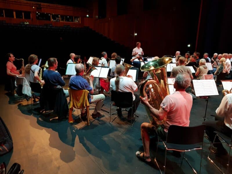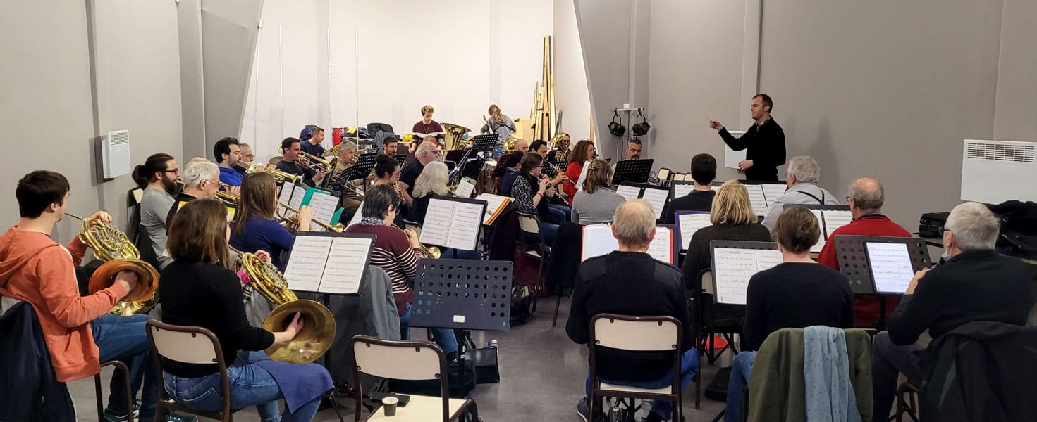 Le répertoire que je leur fais travailler est très varié. Je suis très attentif, avec le bureau, à choisir des morceaux toujours différents, qui plairont, en fonction du niveau de l’orchestre bien sûr et de la cohérence du programme de concert. Il est important que les musiciens se sentent investis et qu’ils n’aient pas l’impression de refaire toujours la même chose. Il me semble que c’est ce qui plaît : un orchestre, avec une diversité de répertoire, dans une bonne ambiance.
