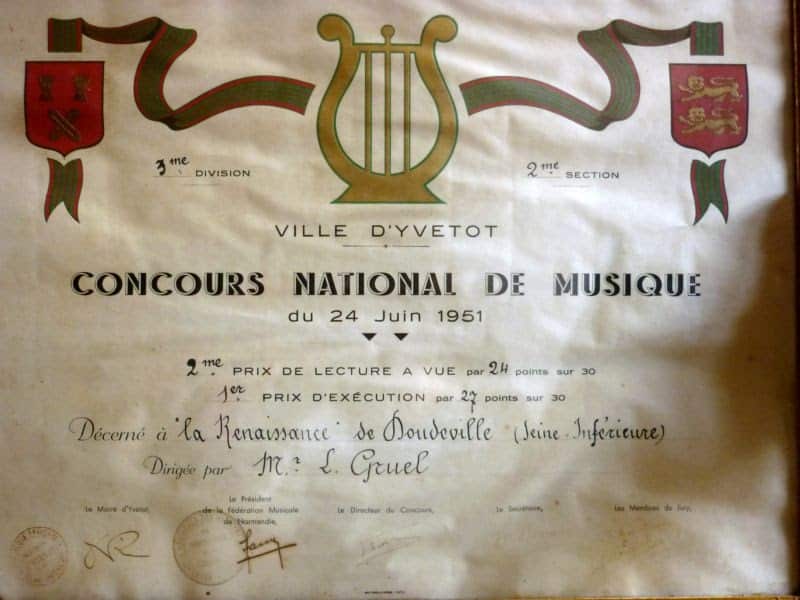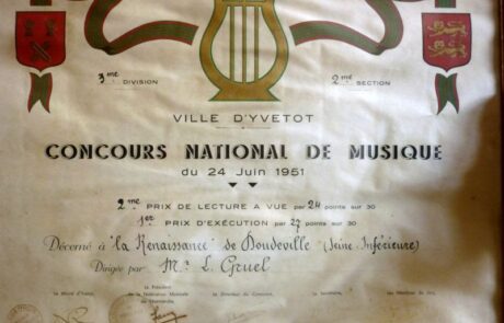 M. CAREL présente sa formation musicale au concours international de musique du Havre. Le premier d’une longue série. Par la suite, La Renaissance participera à de nombreux concours dans le département.