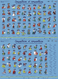 Une frise inclusive et pédagogique, allant du Haut Moyen Age au XXIe siècle, et représentant 100 portraits stylisés (50 de compositeurs et 50 de compositrices).