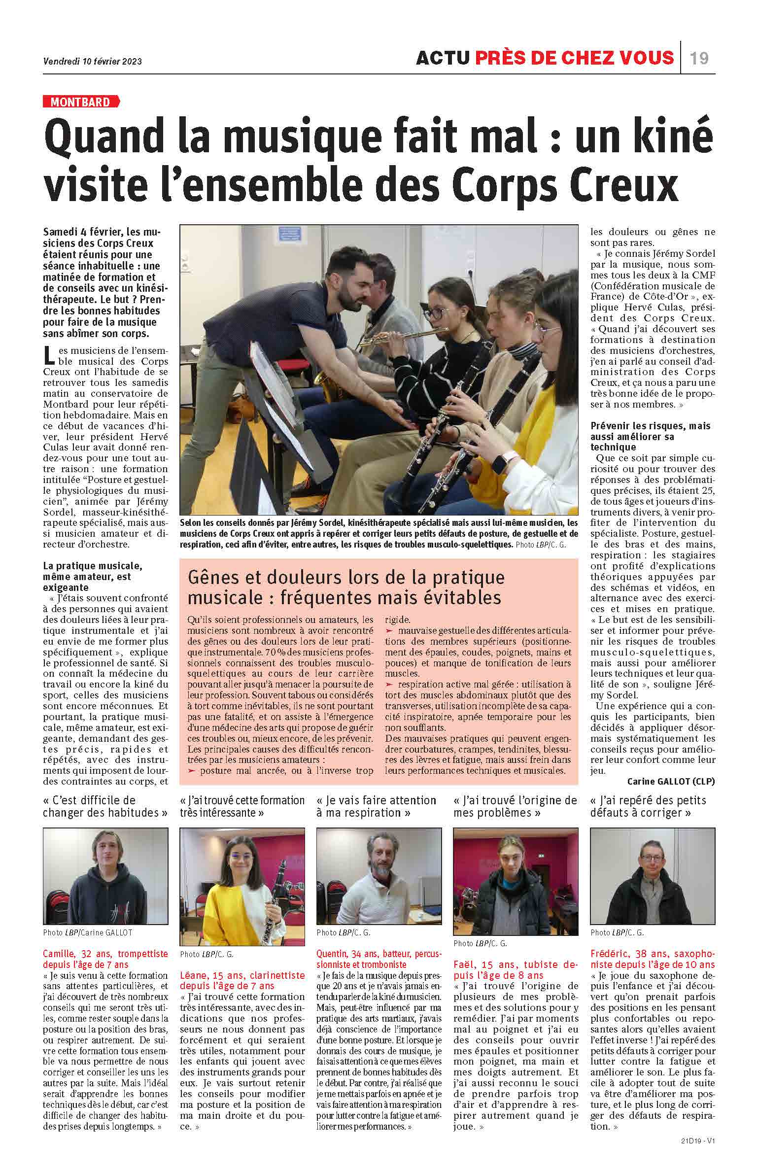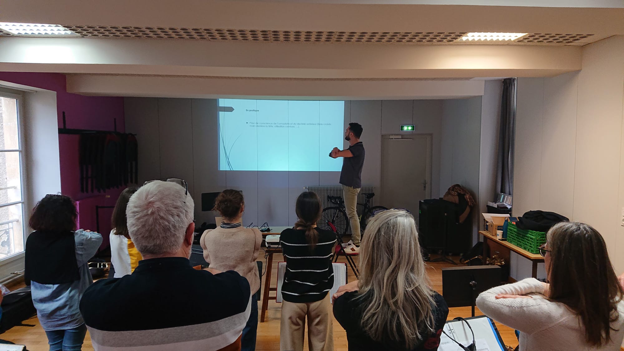 Les éléments vus et expérimentés pendant cette matinée de formation avec un kinésithérapeute ont démontré l’intérêt de la posture dans la musique, ce que la plupart des musiciens étaient loin d’imaginer, à tel point qu’une question est sans cesse revenue : pourquoi si peu de profs nous parlent de cela ?