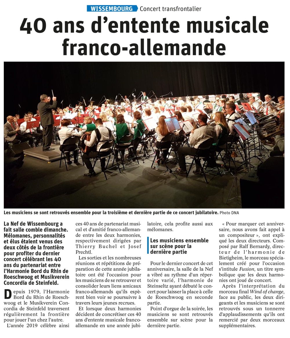 Nos deux harmonies se connaissent et se rencontrent depuis 40 ans. L’année 2019 a été mise à profit pour célébrer ce jubilé.