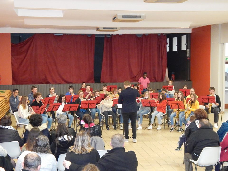Notre chef de musique également professeur de trompette et de percussion a eu l’idée d’organiser un stage pour nos jeunes de l’école de musique sur deux jours pendant les vacances scolaires au sein de notre association: le but était de répéter et de mettre en place de nouveaux morceaux. La matinée était consacrée aux répétitions par pupitre puis l’après-midi les élèves se retrouvaient pour répéter ensemble. Le midi était l’occasion de se réunir tous ensemble autour d’un repas. Le concert ouvert à tous a eu lieu le samedi soir devant un public conquis. Les objectifs de ce stage sont pédagogiques, artistiques mais aussi humains.