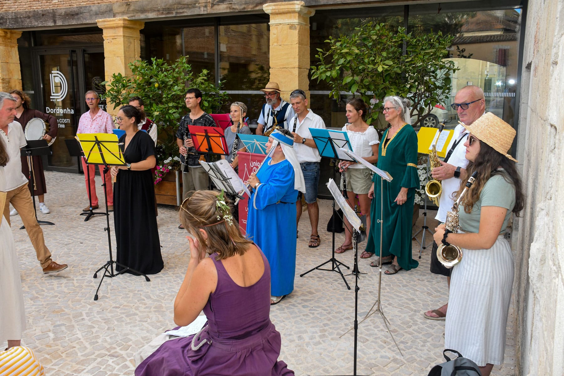 Pour la deuxième année, l’UMB en partenariat avec les musées de Bergerac, propose les visites musicales de Bergerac. Cette année, le thème était Le Joueur de flûte d’Hamelin, et les musiciens se sont déguisés pour apporter une petite touche de gaieté dans la vieille ville de Bergerac. De places en places, la médiatrice culturelle conte l’histoire du joueur de flûte, transposée pour l’occasion à Bergerac.