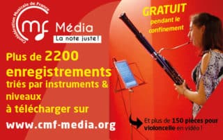 Nous avons tout d'abord une pensée pour tous les musiciens, élèves, professeurs, qui ont vu leurs cours, leurs concerts, leurs événements annulés, alors que depuis des mois les répétitions étaient en cours. Nous avons évidemment une pensée également pour ceux qui peuvent être frappés par la maladie. Mais en ces temps difficile la CMF continue son activité, et, en tant que centre de ressources, nous essayons de vous transmettre le plus d'informations possible.