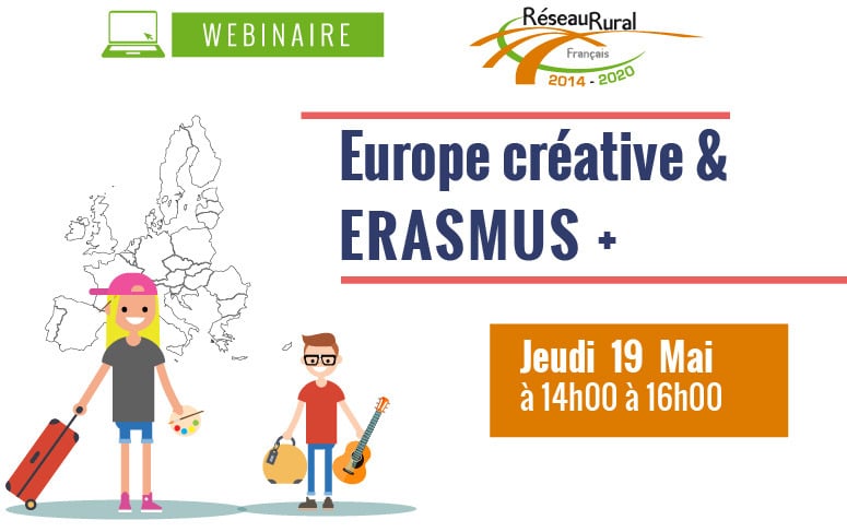 Le Réseau rural national vous invite à participer à son webinaire jeudi 19 mai 2022, de 14h à 16h*, sur le thème “Europe Créative et Erasmus + : Illustrations de programmes européens mobilisables par les acteurs du développement rural”.
